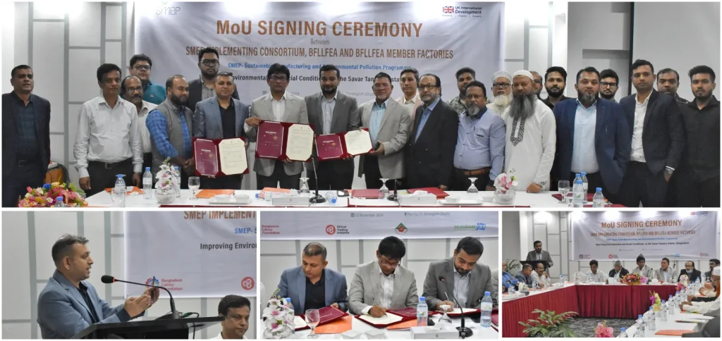 A Memorandum of Understanding (MoU) was signed between the Bangladesh Labour Foundation (BLF) and the Bangladesh Tanners Association (BTA) on